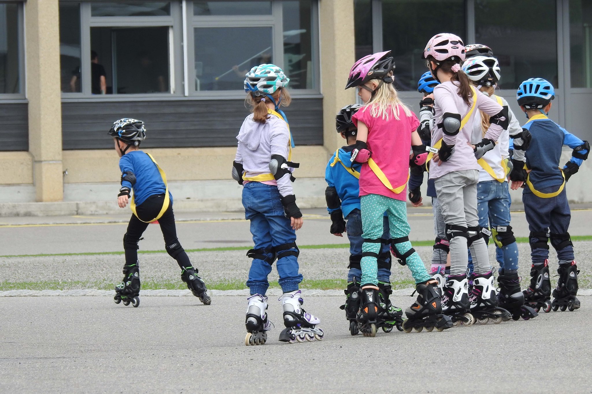 Die Kinder müssen bereits ohne Hilfe einer Drittperson eigenständig fahren können. Nach dem ersten Kursstag wird entschieden, ob das Können für den Kurs ausreicht. Mitbringen: Eigene Inline-Skates, Schutzausrüstung (Hand-, Ellbogen-, Knieschoner und Helm) sowie Turnschuhe und Trinkflasche. Der Kurs findet bei jedem Wetter statt. Bei Schlechtwetter findet er im Foyer der Dreifachturnhalle statt.